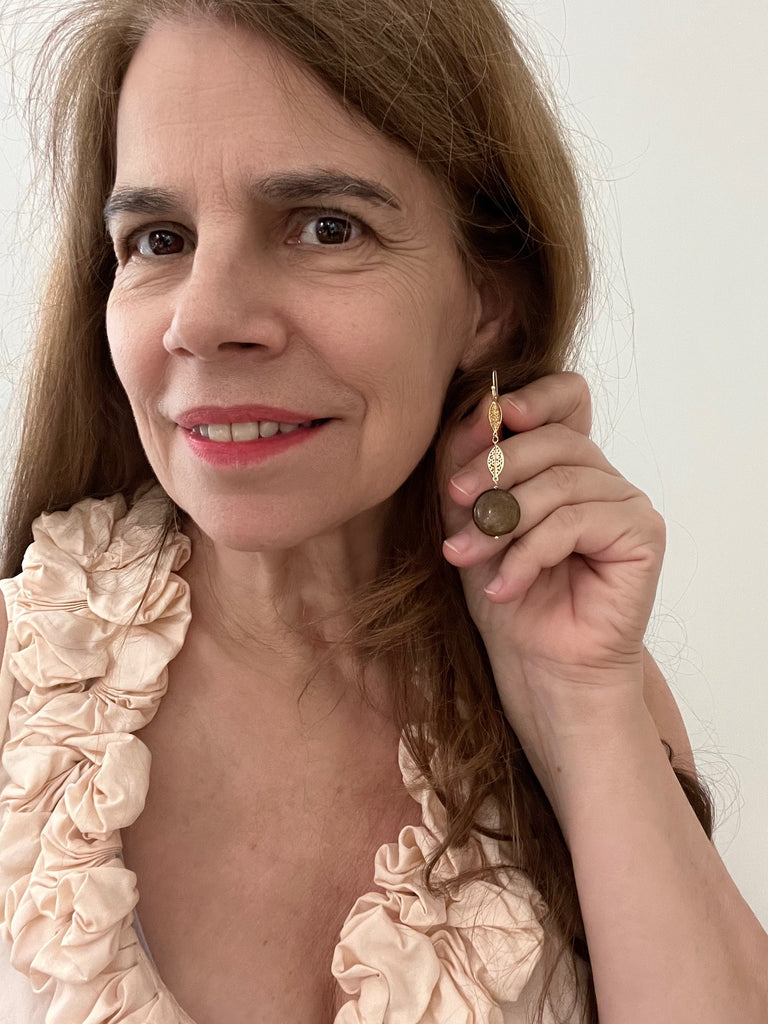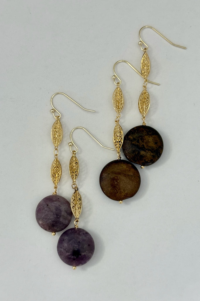 Discover the elegance of our Izar Earrings—a minimalist drop available in your choice of rich purple Agate or warm Bronzite.