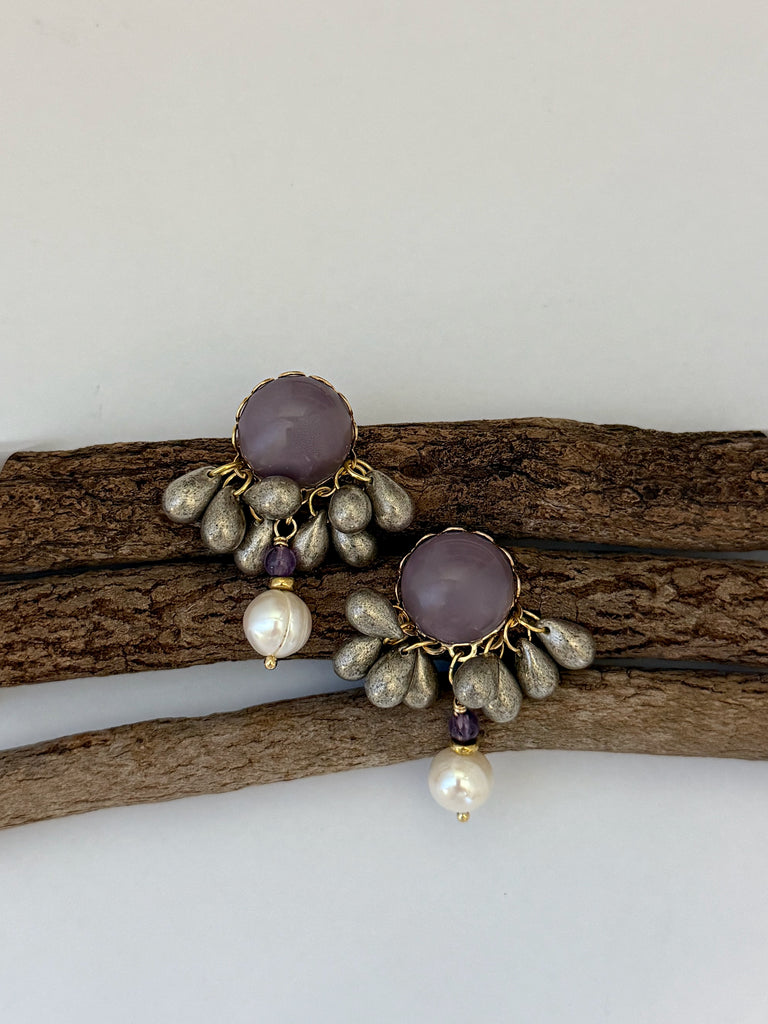 These Olwen Earrings feature lively silver glass drops that add a joyful and festive touch to any outfit. Perfect for celebrating in style!