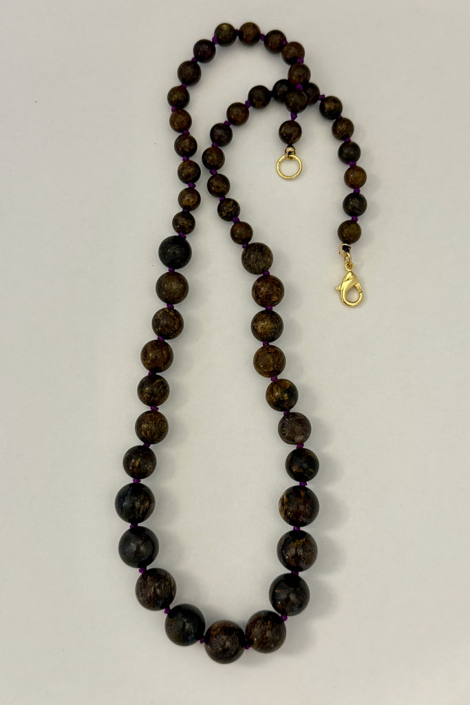 Discover this exquisite necklace, hand-knotted on silk with graduated Bronzite gems—a stylish must-have for the season. Shown with our Starla Necklace.